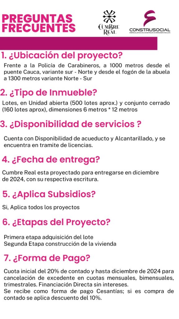 ¿Buscas comodidad y facilidad al adquirir tu lote premium? Nuestra financiación premium te ofrece cuotas flexibles y un proceso sencillo. Te guiamos en cada paso del camino. ¡Inicia emocionante esta travesía hacia la propiedad de tus sueños con CONSTRUSOCIAL!